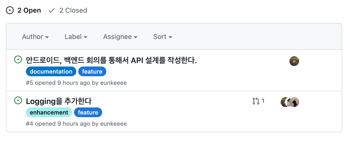 과정을 통해서 팀원들에게 내가 어떤 내용을 구현하고자 하는지, 현재 어떤 일을 하고 있는 지 명확하게 전달할 수 있고, 앞으로 해야 할 일이 무엇인지에 대해서도 미리 작성해 놓을 수 있다. 상황에 따라 issue를 다른 팀원에게 assign할 수도 있어서, 책임도 명확히 할 수 있다.