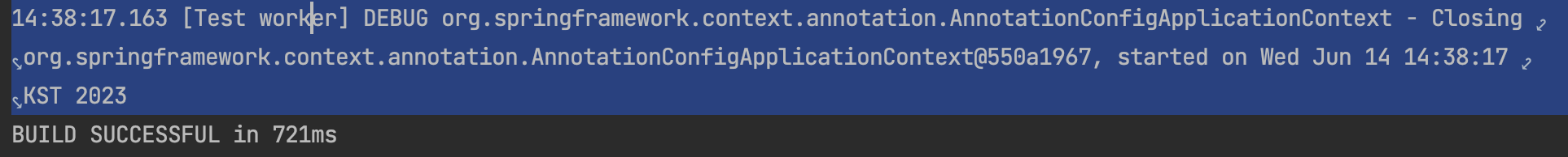 ApplicationContext에 bean 요청을 두 번 하고 있지만 동일한 객체를 스프링 컨테이너를 통해 반환받고 있는 것을 확인할 수 있다. (테스트는 통과함)