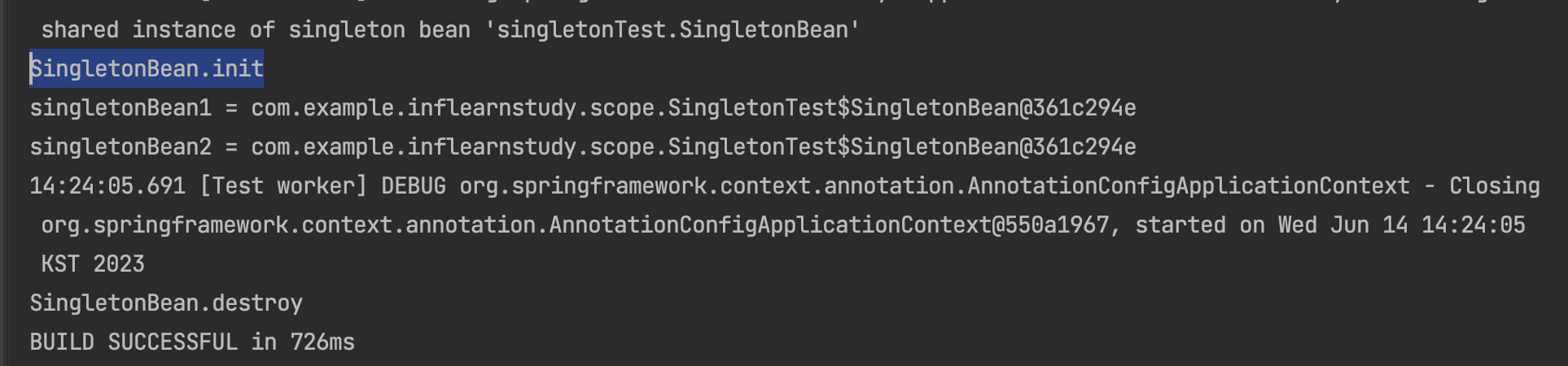 final SingletonBean singletonBean1 = ac.getBean(SingletonBean.class);