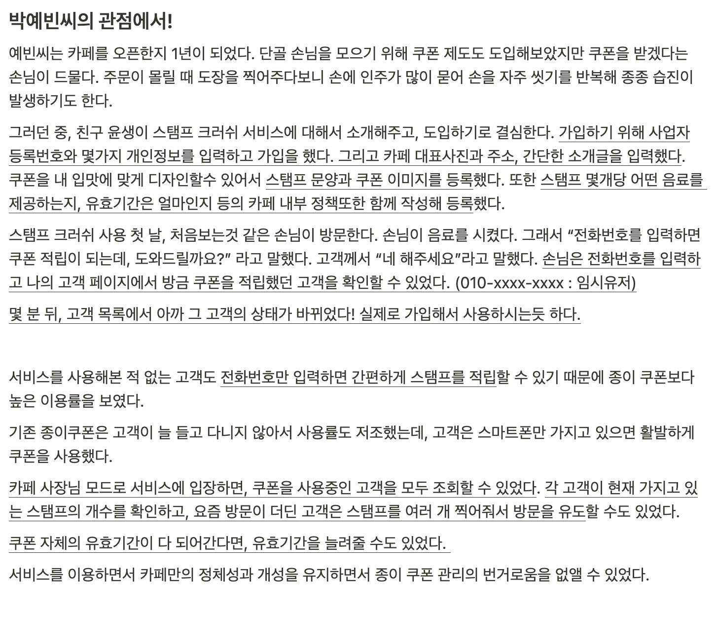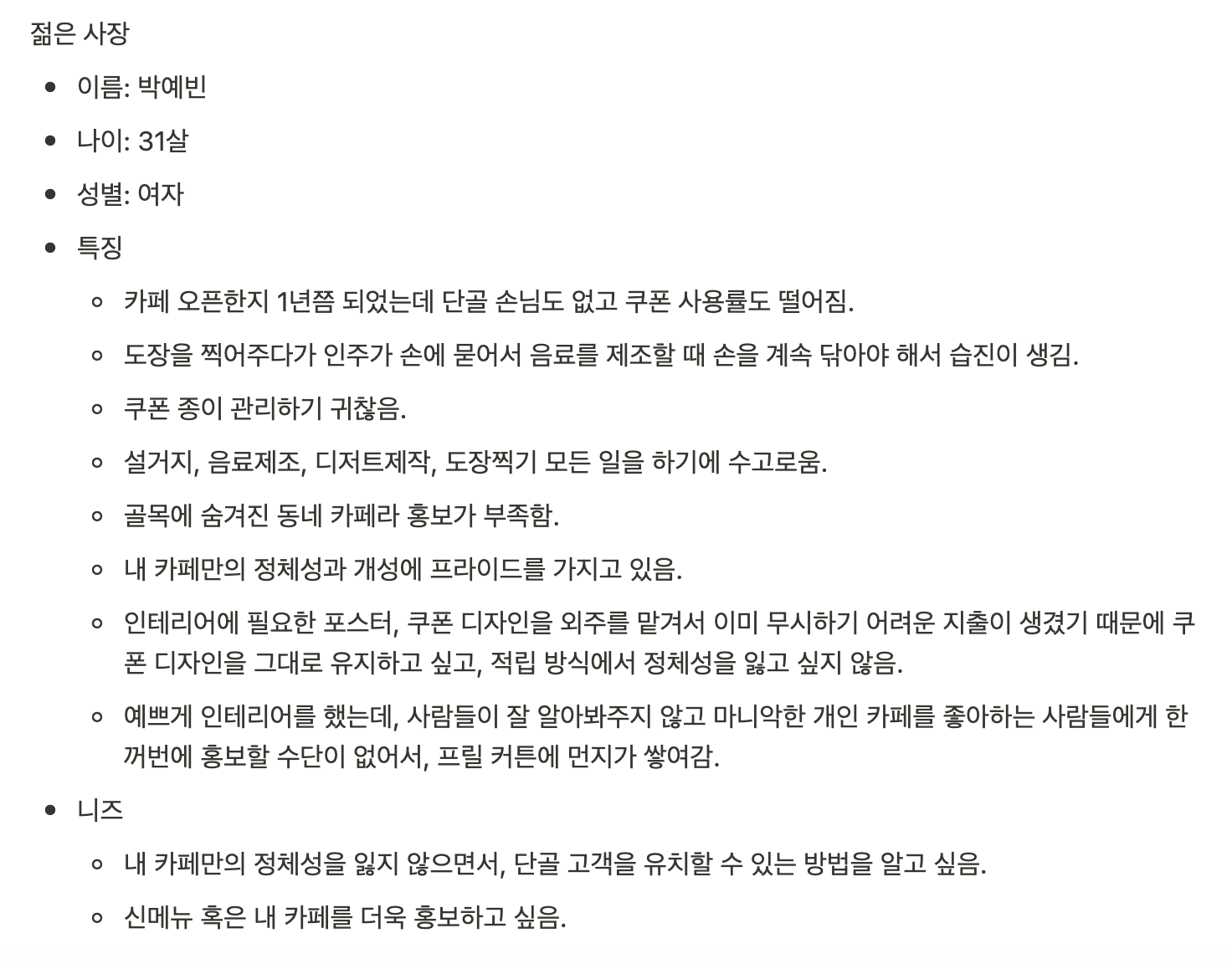 아래에는 카페 사장의 페르소나인 '박예빈'씨에 대한 유저 시나리오를 첨부하겠다 .