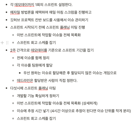 우테코 데모데이가 2주를 단위로 진행되기도 하고, 소프트웨어 개발은 수시로 요구사항이 변경되기 때문에 매 스프린트마다 새로운 계획을 세울 일이 많다고 생각했기 때문이다.