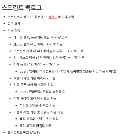 두 번째 스프린트가 시작한 지 하루 지난 7/11 화요일 저녁에 첫 스프린트 플래닝 미팅을 했다.