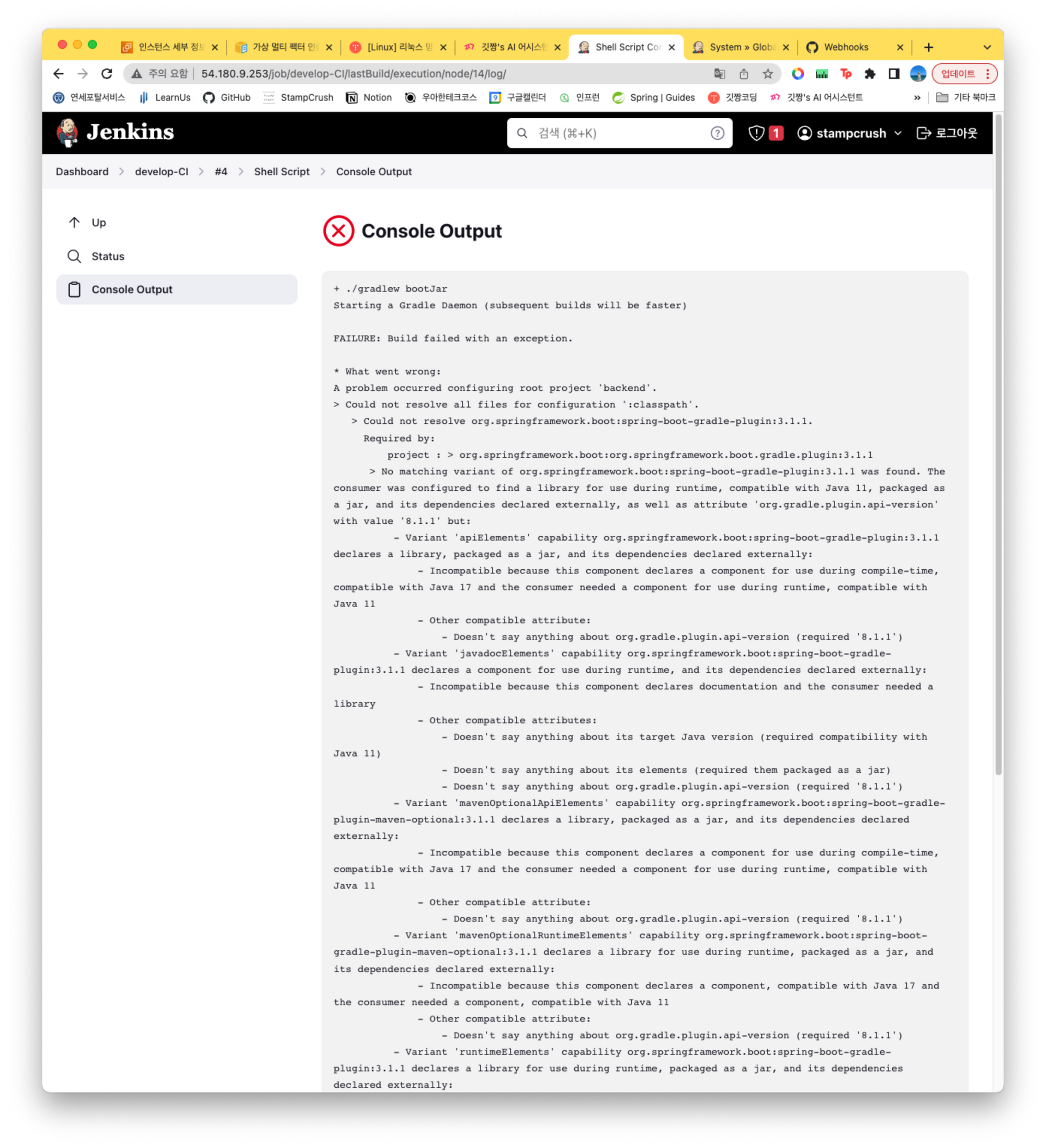 이유는, 우리 프로젝트는 자바 17로 작성했는데, 젠킨스가 자바 11로 빌드하려고 했기 때문이다.