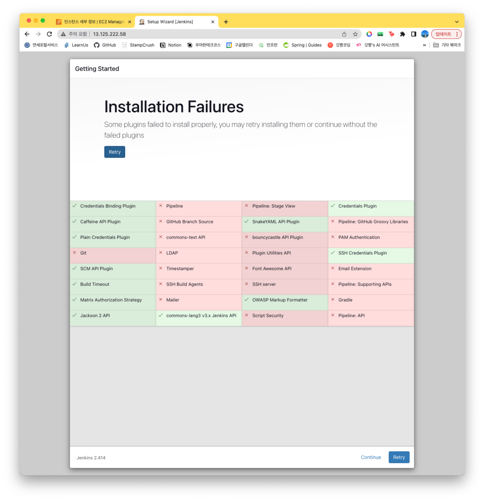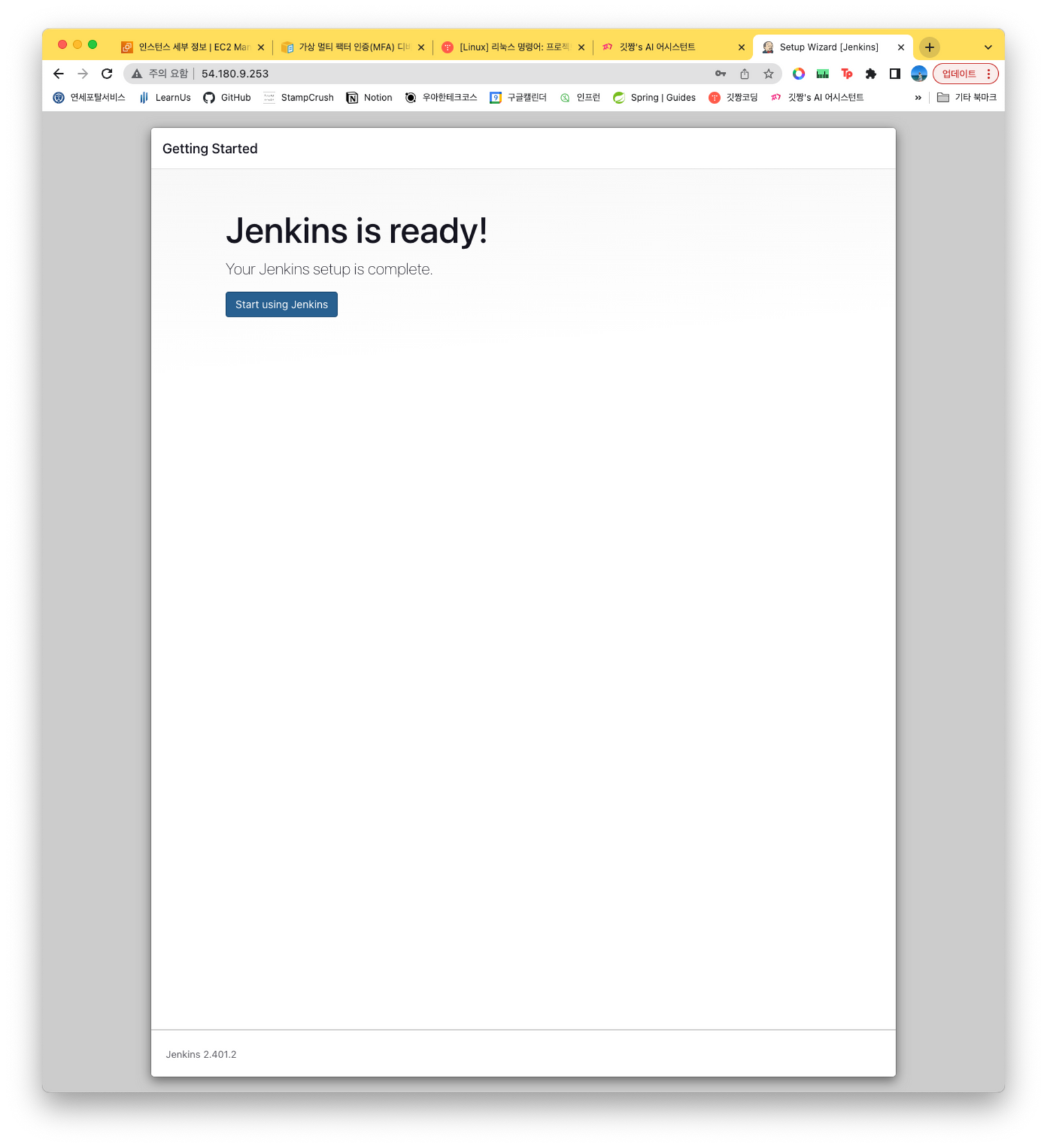 설치 과정은 EC2 환경에서 도커를 활용한 젠킨스 설치하기라는 포스팅을 보면서 진행했다.