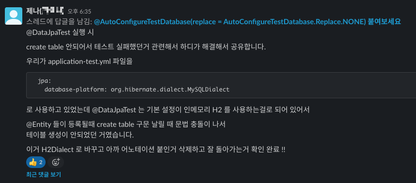 - 인수테스트 격리는 완료되었는데, 난데없이 DataJpaTest가 전부 실패함