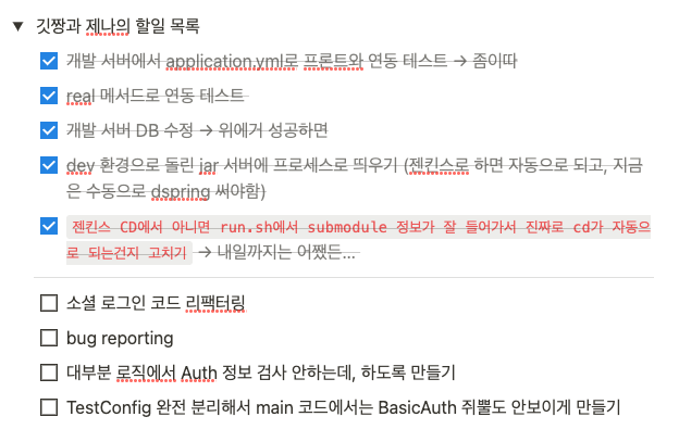 - 할일 목록 가운데 필수적인 것들은 마무리했는데, 아직 리팩터링이 미흡.. 근데 레벨3 기간 안에 할 시간이 있을지는 잘 모르겠다