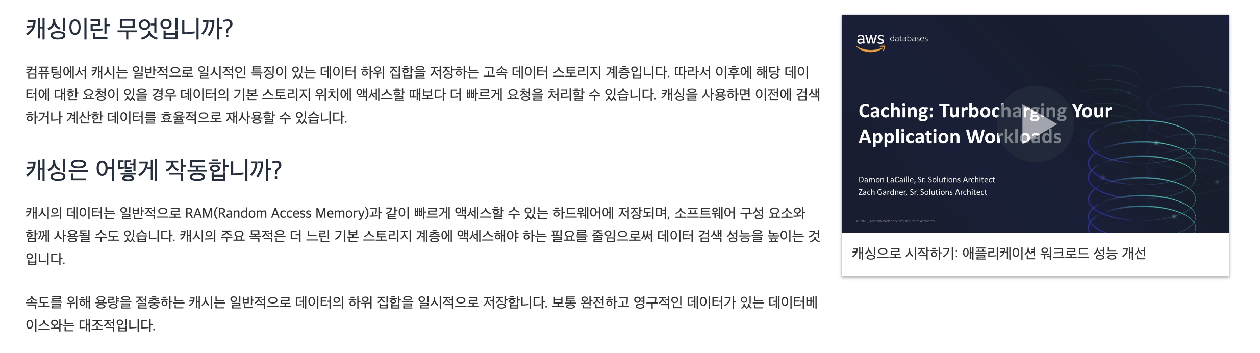참고: https://aws.amazon.com/ko/caching/