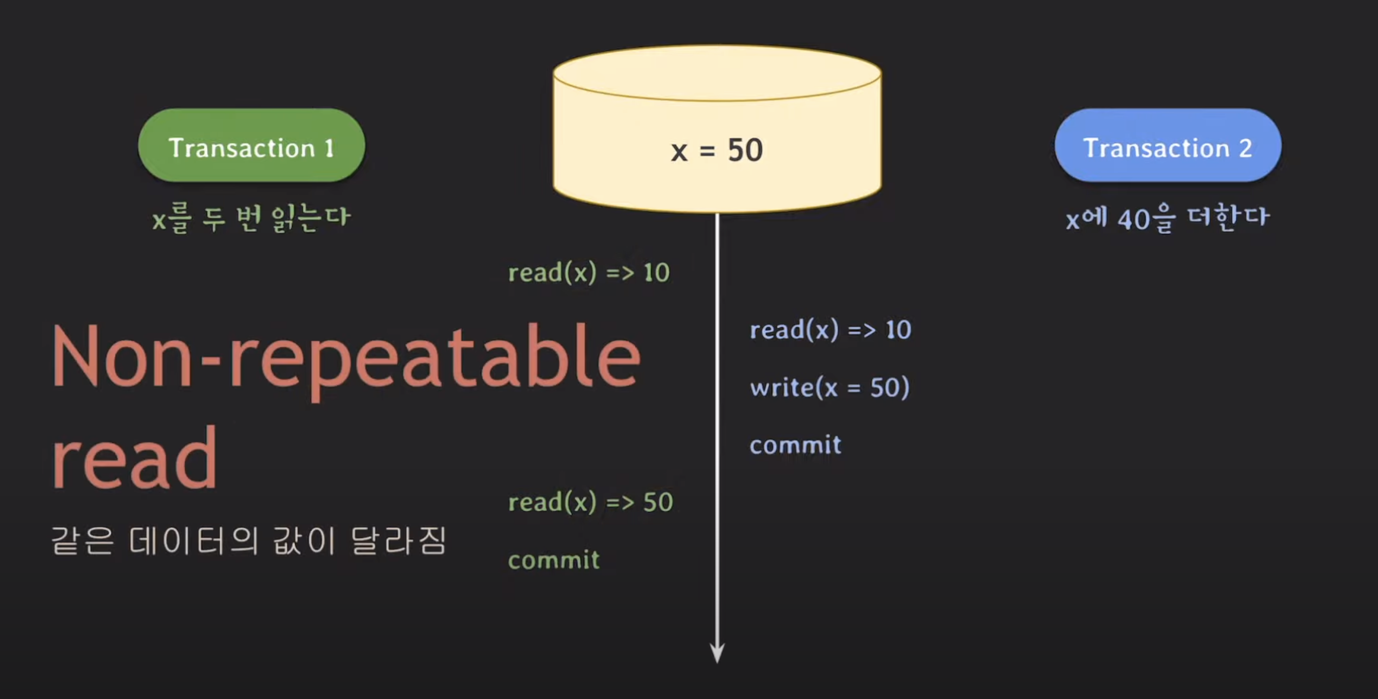 - 하나의 트랜잭션 내에서 같은 데이터의 값이 달라짐
