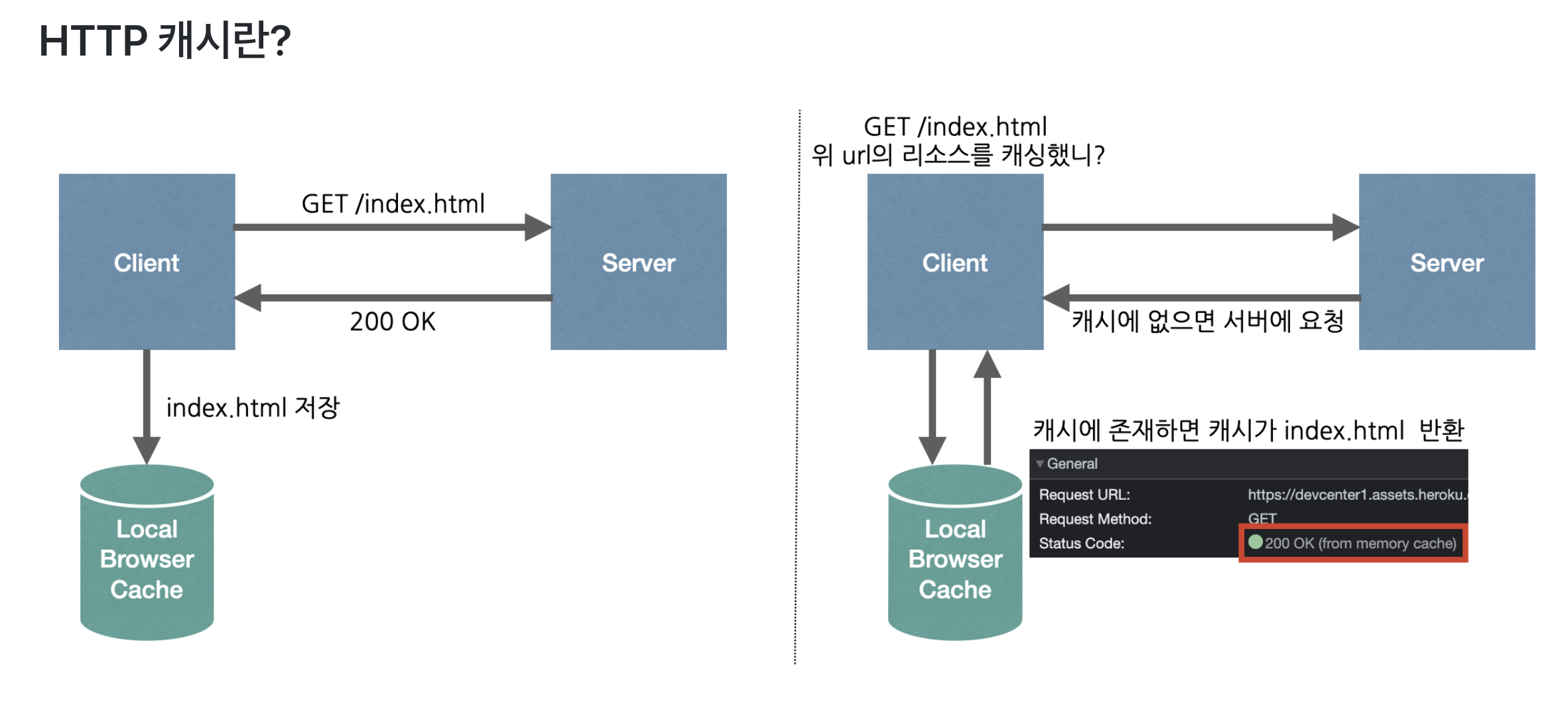 - 웹에서의 캐시는 웹 페이지, 이미지, 스크립트, 스타일 시트 등의 자원들을 저장하여 이후에 동일한 자원에 접근할 때 더 빠르게 가져올 수 있도록 함.