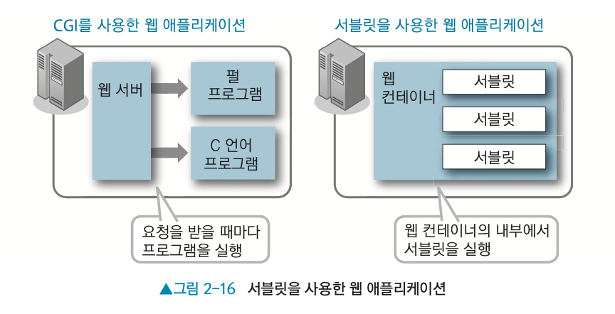 - CGI를 경유해 기동 하는 펄이나 C 언어의 자바 버전에 해당