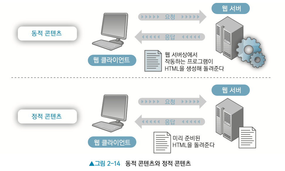 - 동적 컨텐츠: 프로그램이 생성한 HTML 등의 컨텐츠