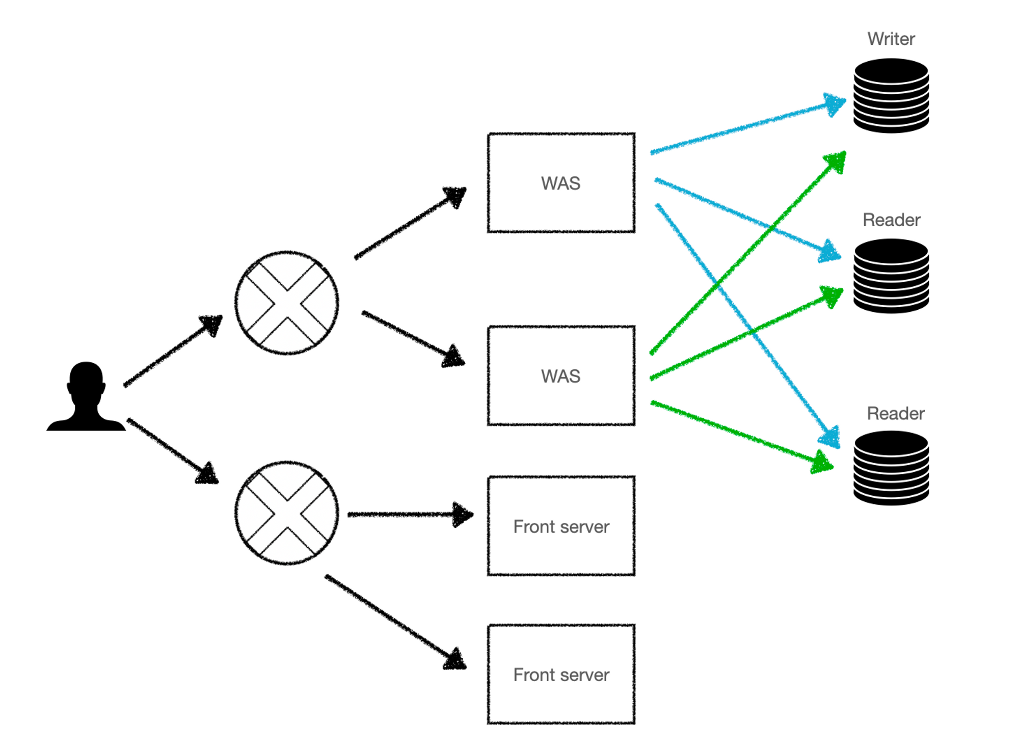 - reader DB 2개를 통해서, 데이터 조회 작업을 수행함.