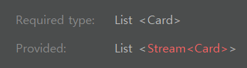 불쾌한 빨간줄이 뜨고 있다... 이유는 각 요소들이 하나의 스트림으로 합쳐지지 않고, 스트림의 스트림 형태로 되고 있다.