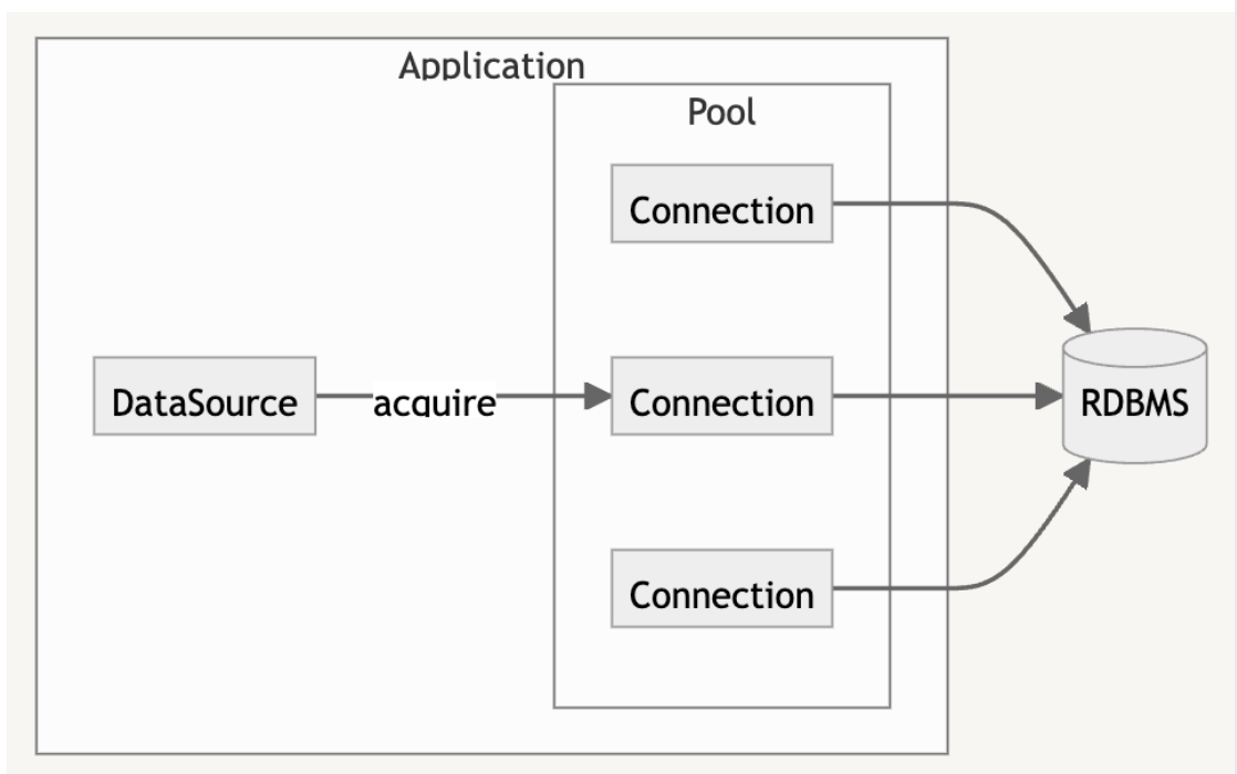 - DB와 연결 요청이 들어올 때, 커넥션 풀에서 연결 객체를 꺼내서 주고, 다 사용하면 재사용할 수 있게 다시 커넥션 풀에 반환한다.