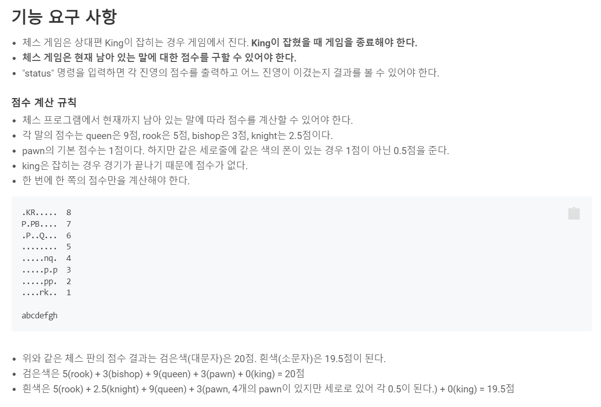 단점은 Board에서 해당 위치에 어떤 말이 있는지 순회하면서 찾는 것이 조금 어려웠다는 것이다.