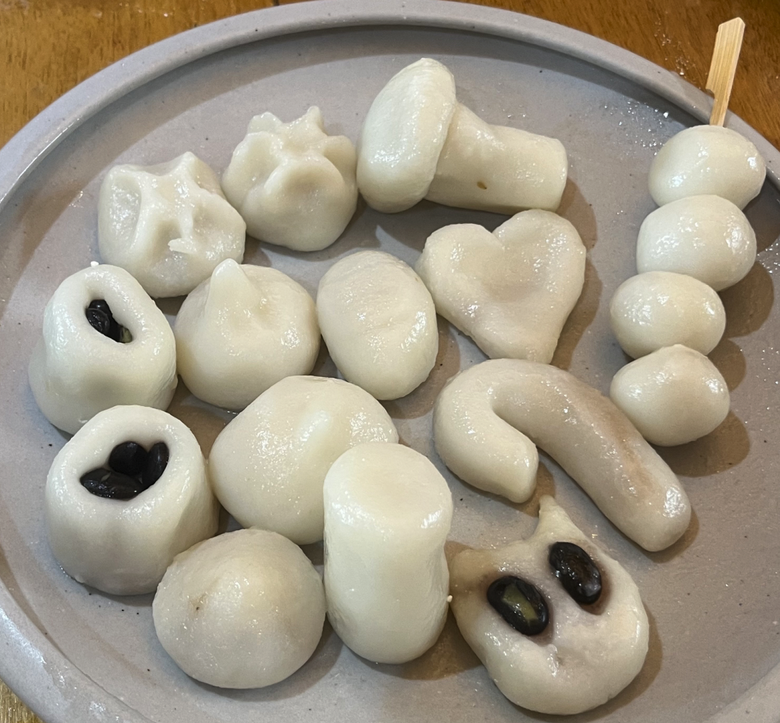 왼쪽 위부터 딤섬 송편, 버섯 송편, 당고 송편, 콩 타르트 송편, 바게트 송편, 하트 송편, UFO 송편, 지팡이 송편, 원기둥 송편, 화난 고양이 송편