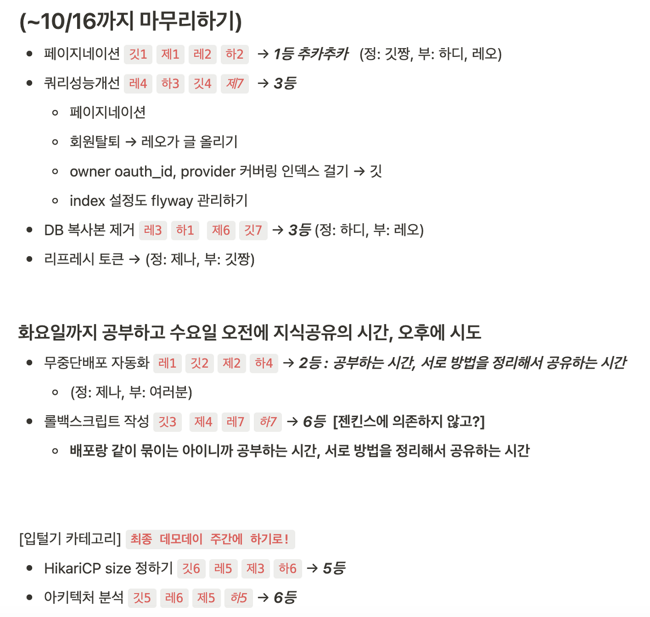 각자 생각하는 우선순위를 매겼고, 페이지네이션에 대해서 내가 제1 책임자가 되었다.