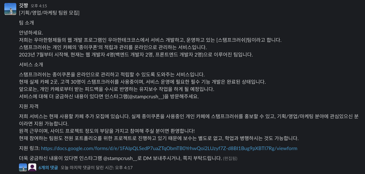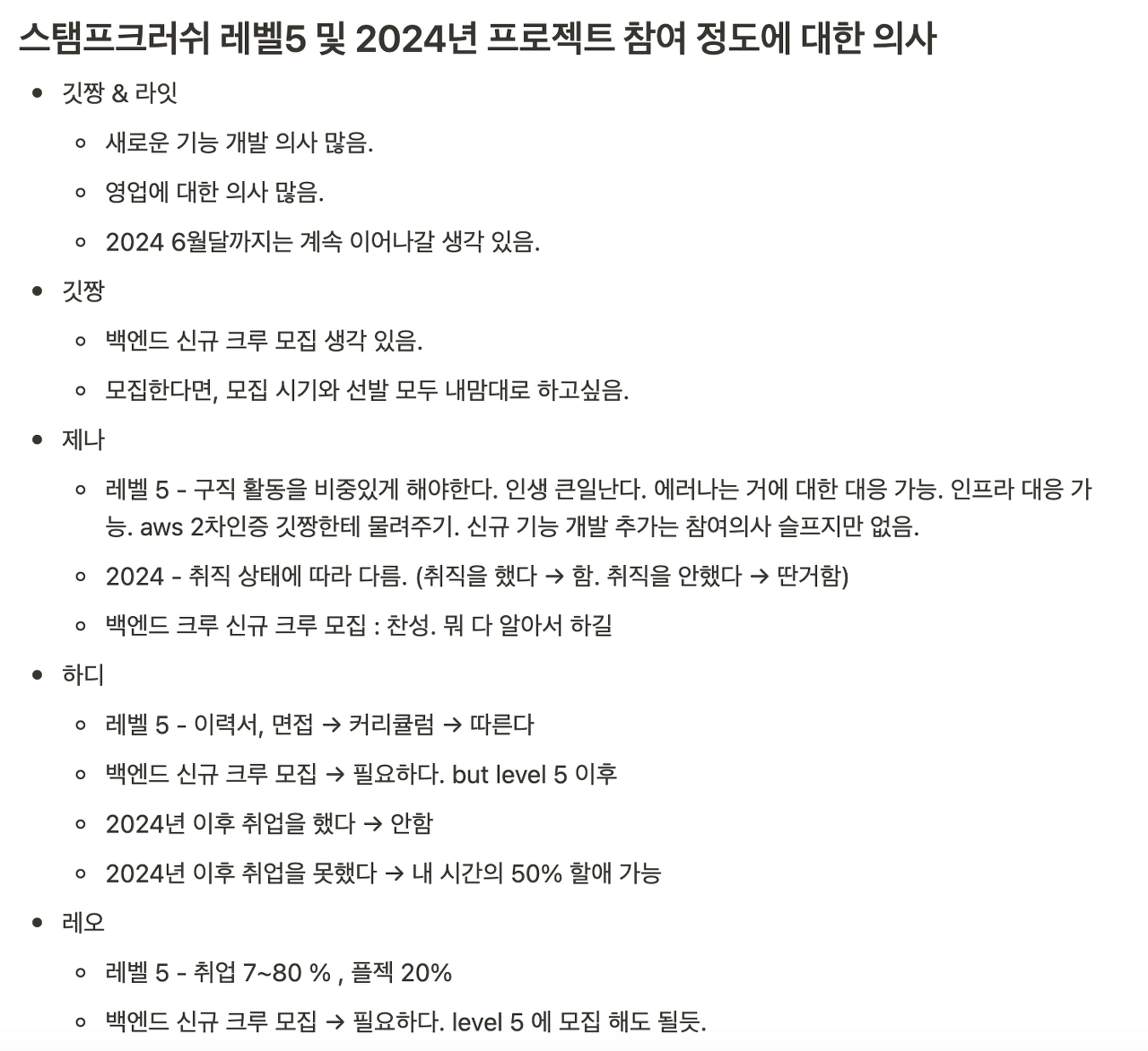 스탬프크러쉬의 미래에 대해 이야기하는 회의를 했다.
