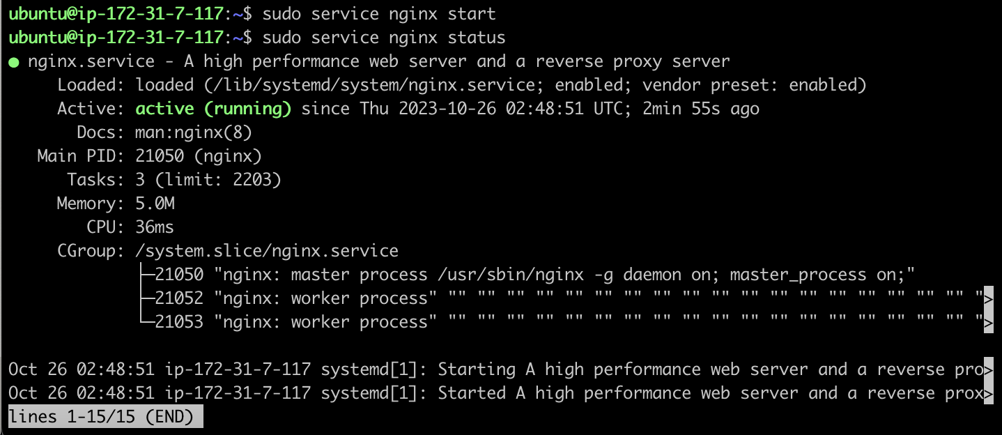 아래 두 명령어로 간단하게 우분투 서버에 nginx를 설치할 수 있다.