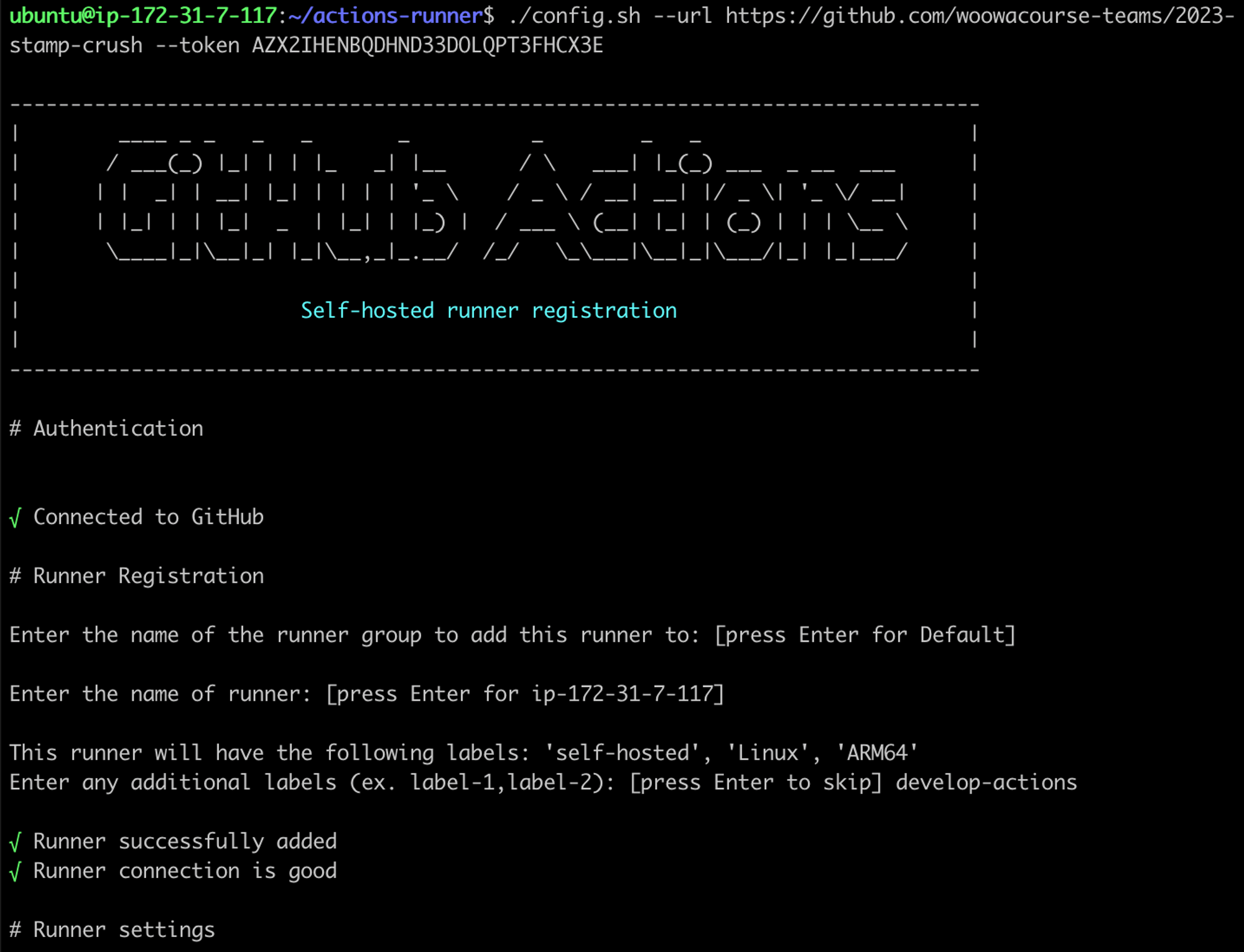 - github actions self-hosted runners를 설치하고 labels를 설정해야 한다.