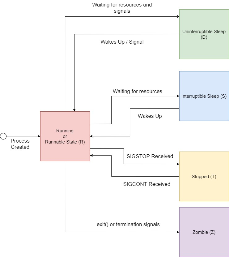 예를 들어, 리눅스는 아래와 같은 상태를 가집니다.