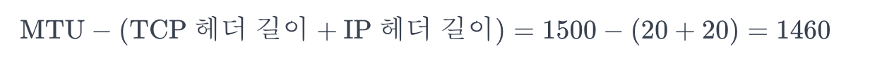 TCP와 IP 헤더는 각각 20바이트씩을 차지하는 것이 일반적이기 때문에, MTU가 1500바이트인 경우, 페이로드의 길이는 1460바이트입니다.