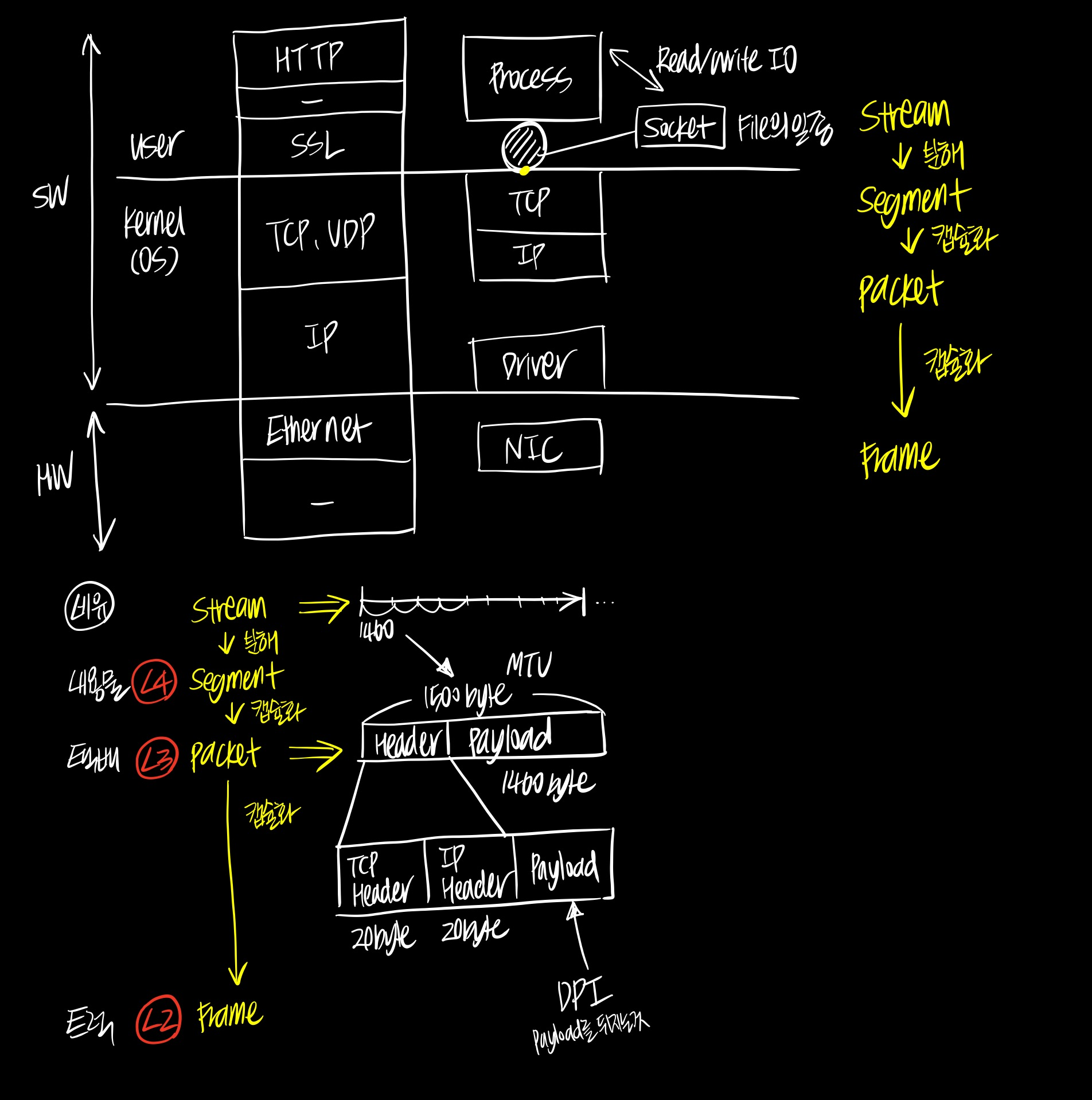 전송하려는 데이터인 stream이 MTU(Maximum Transmission Unit), 일반적으로 1500 byte보다 큰 경우 먼저 이 데이터를 작은 조각인 패킷으로 나누어집니다.