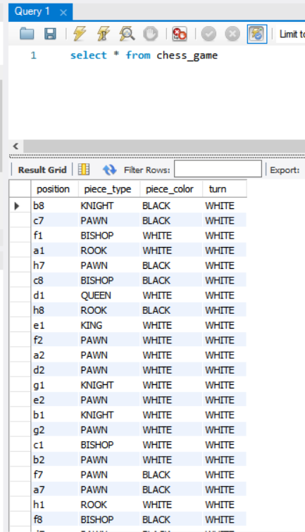 CREATE TABLE chess_game(