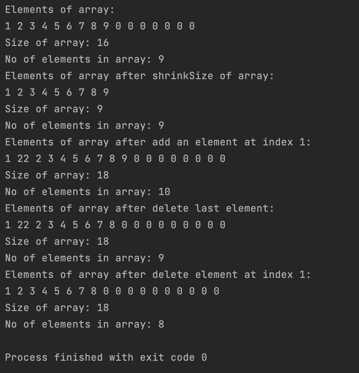 - 사용자가 직접 호출하여 내부 배열의 크기를 현재 요소의 개수에 맞게 조절할 수 있습니다.