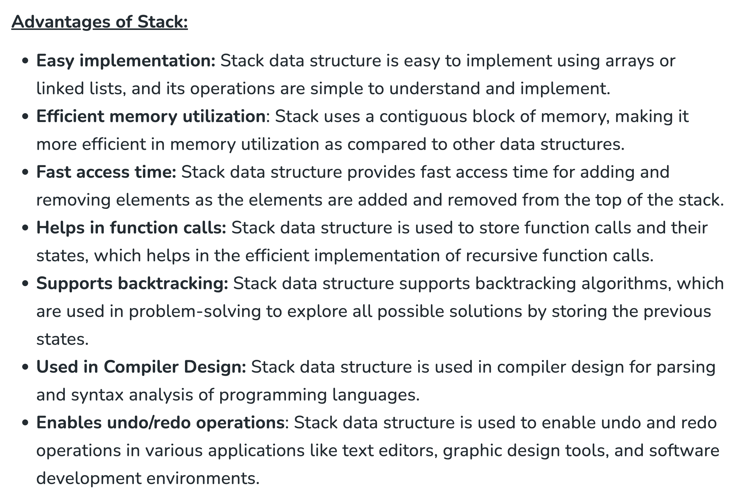 ArrayorLinkedList사용해서 쉽게 구현할 수 있음. - 메모리를 효율적으로 사용 ⇒ (일반적으로) 연속적인 공간에 데이터를 저장하기 때문에 효율적임!