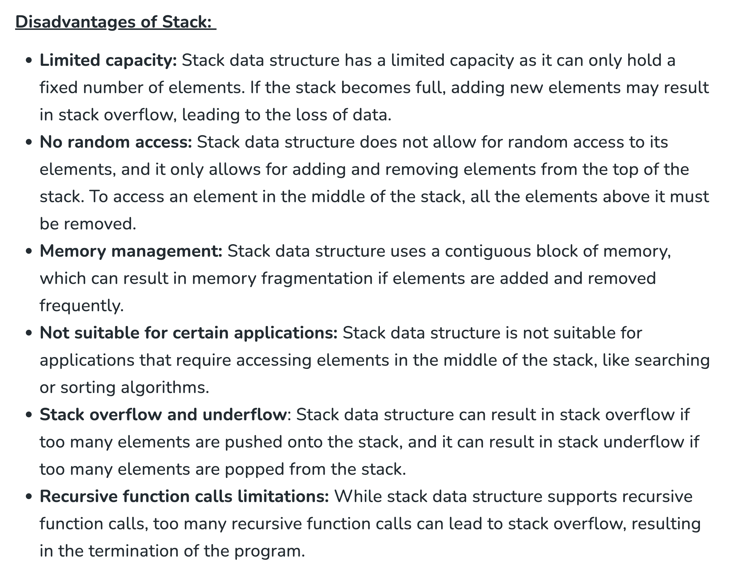 스택의 데이터 중 가장 최근에 추가된 데이터만 접근할 수 있기 때문에, 스택의 첫 번째 데이터의 저장 위치를 알고 있어야 합니다.