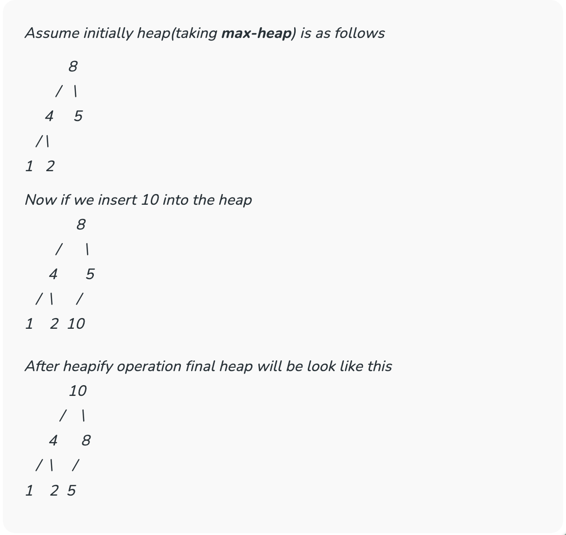 연산은 모두 Max Heap 기준으로 설명하겠습니다. Min Heap은 그냥 반대로 생각하면 됩니다.
