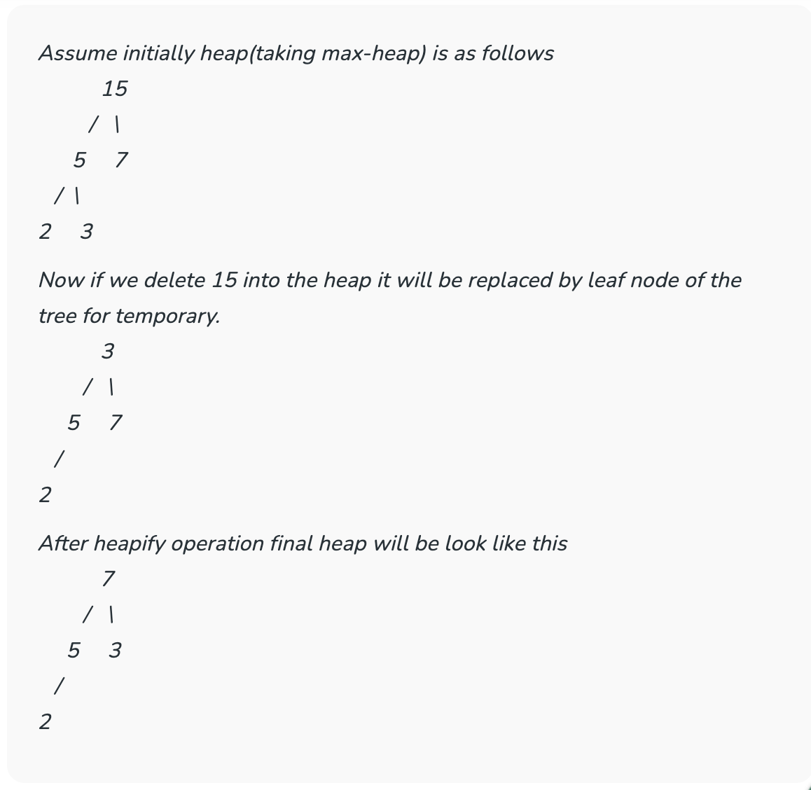 - 트리의 균형이 맞을 때까지 다시 Heapify 과정을 반복해야 하므로, 결과적으로