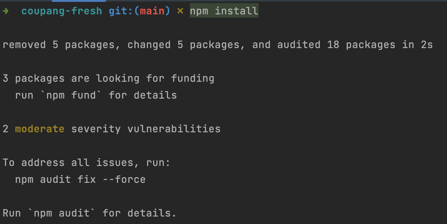 ✔️ package.json에 써있는 dependencies대로 설치하기