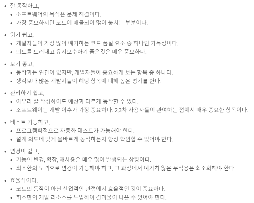 코드 품질이 중요한 이유는 정말 많은데, 강의 자료에 있던 내용은 아래와 같다.