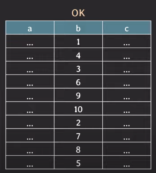 위의 테이블에 대해서 b에 대해서 인덱스를 생성하려고 한다.