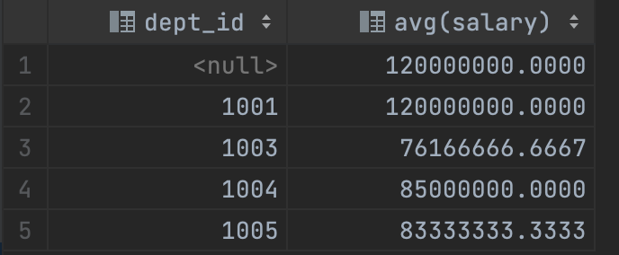 ✔️ 예시 2: 각 부서별 평균 연봉을 가져오는 프로시저