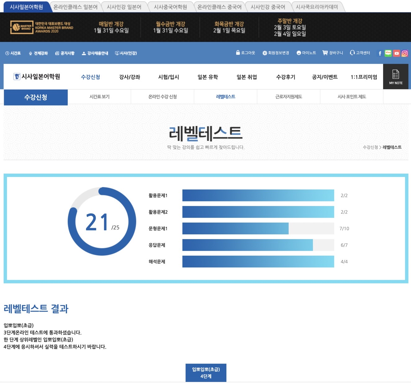 - 그냥 맨날 빈둥거리다가 나의 실력을 테스트해보기 위해 시사일본어학원 레벨테스트를 봤는데 그래도 엄청 열심히 공부한 3개월차 수준까지는 통과했다. 힘 남으면 오늘 4개월차도 해봐야지,,, (4개월 정도차까지가 N3라고 하는데 이제 한자만 외우면 된다는 뜻인가 ^..^)