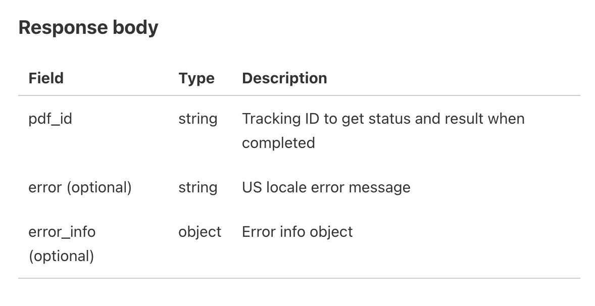 위에서 설명한 방법대로 포스트맨으로 보내봤더니 드디어 제대로 response body로 pdf id가 온다!