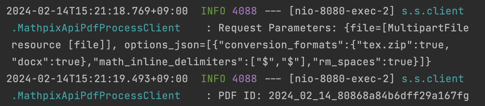나는 별도로 MathpixApiPdfProcessApiClient라는 컴포넌트를 별도로 만들어서 거기서 모든 작업을 처리하고 서비스 코드에는 응답으로 받은 pdf id만을 반환하는 메서드만을 열어두었다.
