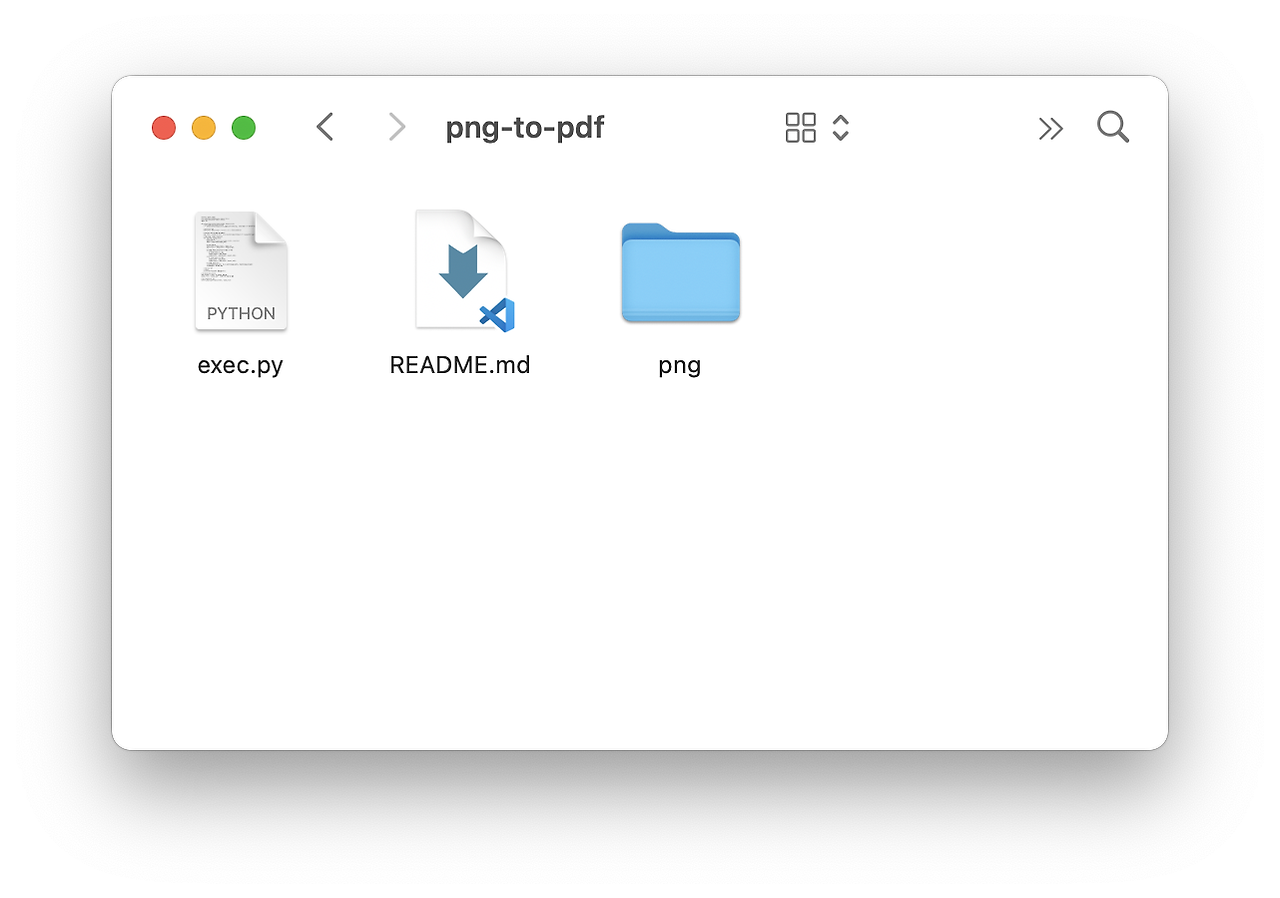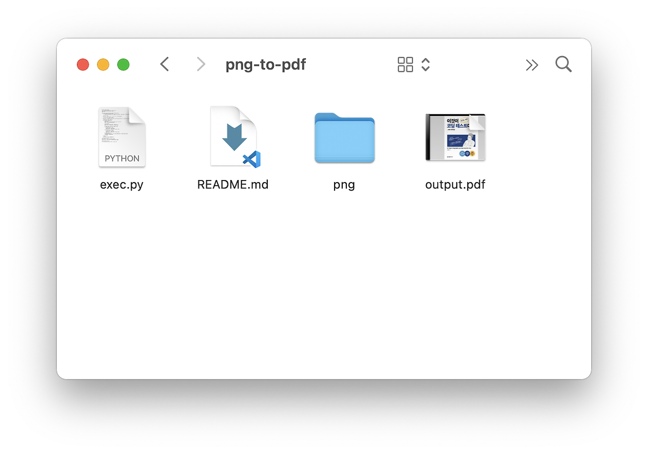 3. 변환하고자 하는 png 파일을 png라는 이름의 폴더에 모은 후, png-to-pdf 파일에 폴더를 놓아 주세요.