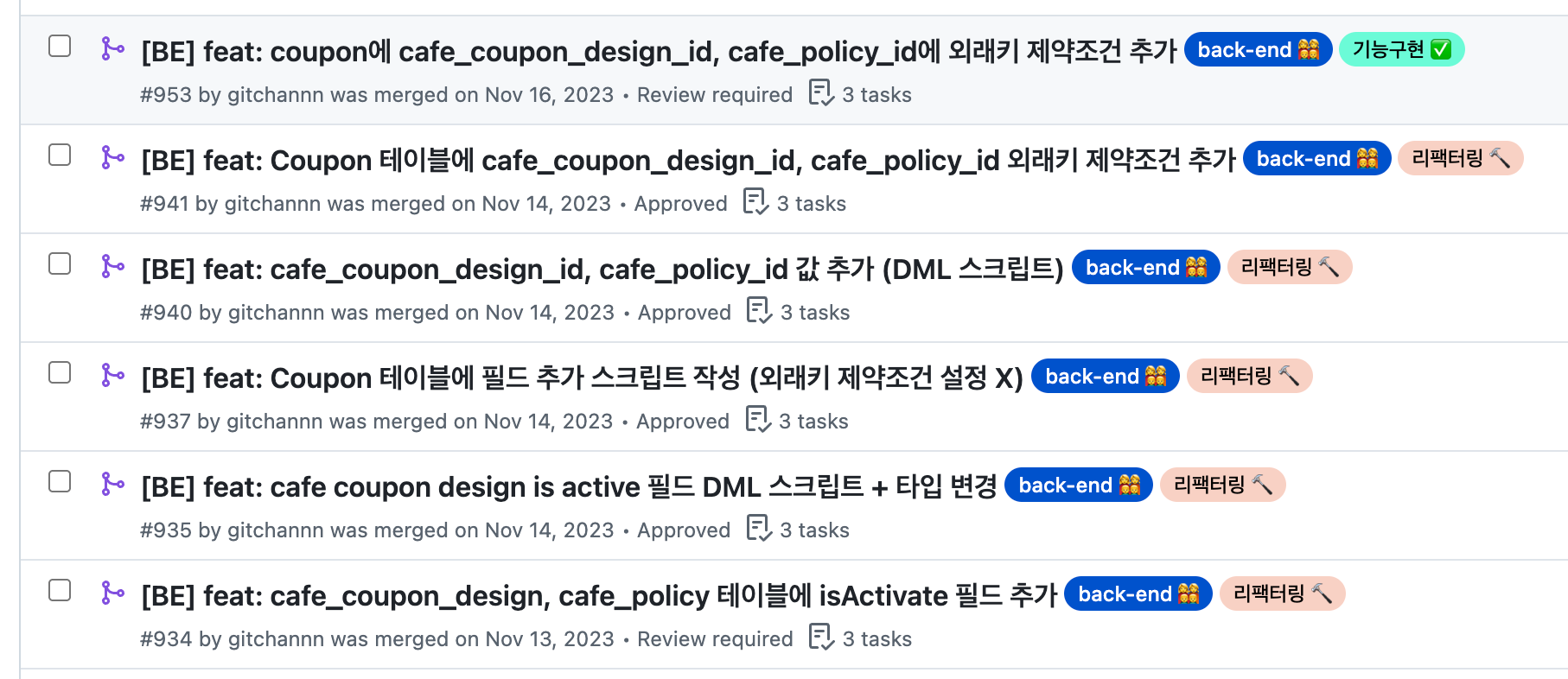 - Coupon 테이블에 cafe_coupon_design_id, cafe_policy_id 외래키 제약조건 추가 → PR