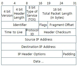 IPv4 헤더 주요 필드 (20바이트 고정 + 옵션 최대 40바이트)