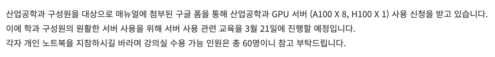 - 연구소나 클라우드 환경에서 여러 사용자가 동시에 A100 한 장을 공유할 때 유용하다.