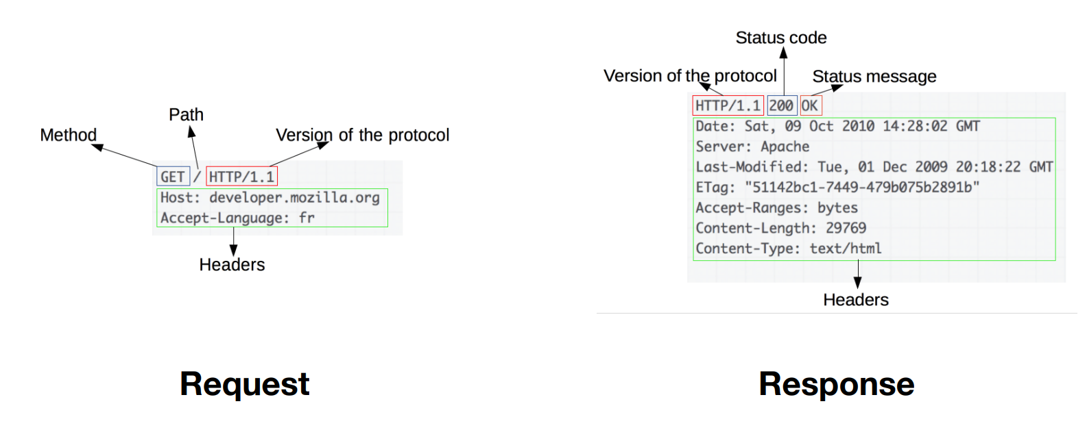 요청 메세지는 세 가지 부분으로 이루어져 있다.