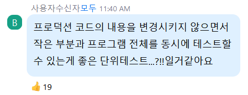 하지만 불행하게도, IT 기업의 많은 높으신 분들은 테스트 케이스를 작성할 바에는 그 시간(비용)에 프로덕션 코드를 더 쓰는게 좋다고 생각하는 분들도 있다.