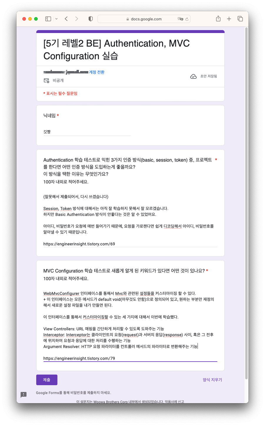 - 장바구니 미션에 대한 1단계 회고를 작성했다. 회고라 하기에는 피드백 정리이긴 하지만, 사실 내가 미션 진행하면서 궁금했던 부분에 대해 질문을 해서 피드백을 받았으니, 피드백 정리가 곧 회고이기도 하다.