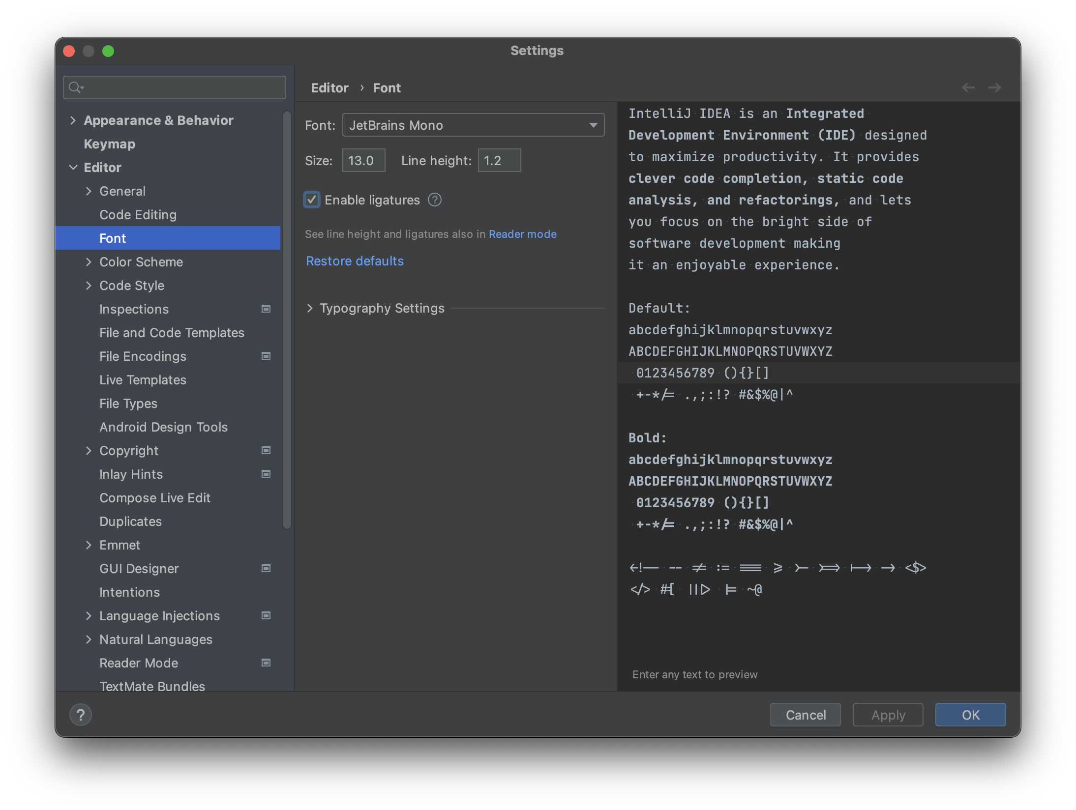 Enable ligatures 체크!