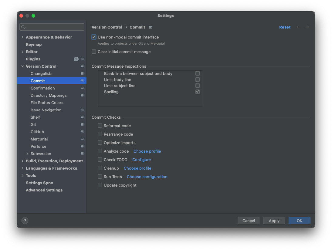 Settings > Version Control > Commit
