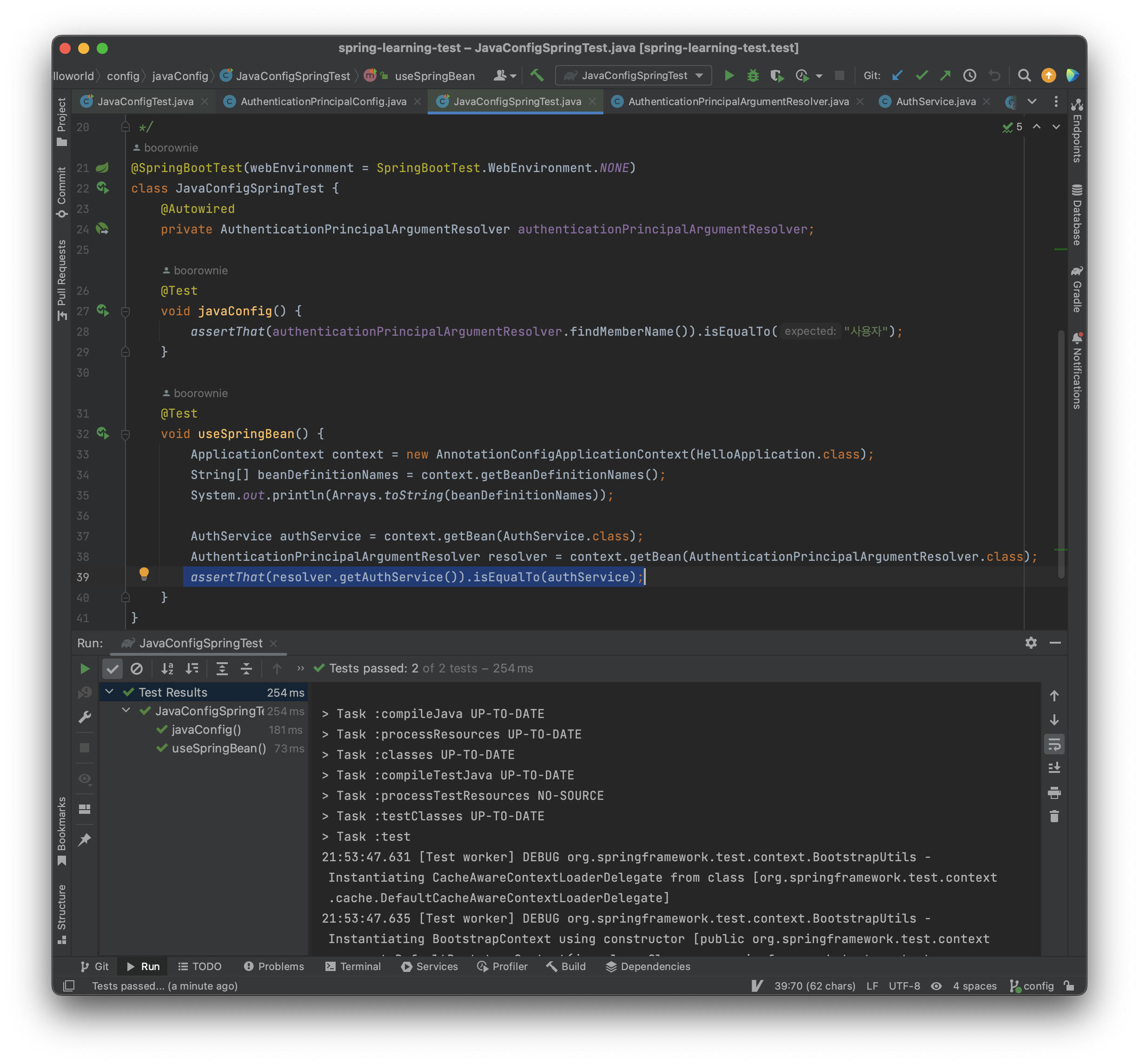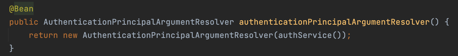 - 현재의 경우에는, authenticationPricipalArgumentResolver 내부에서 authService()를 호출하는 방식으로 다른 빈을 참조하고 있다!